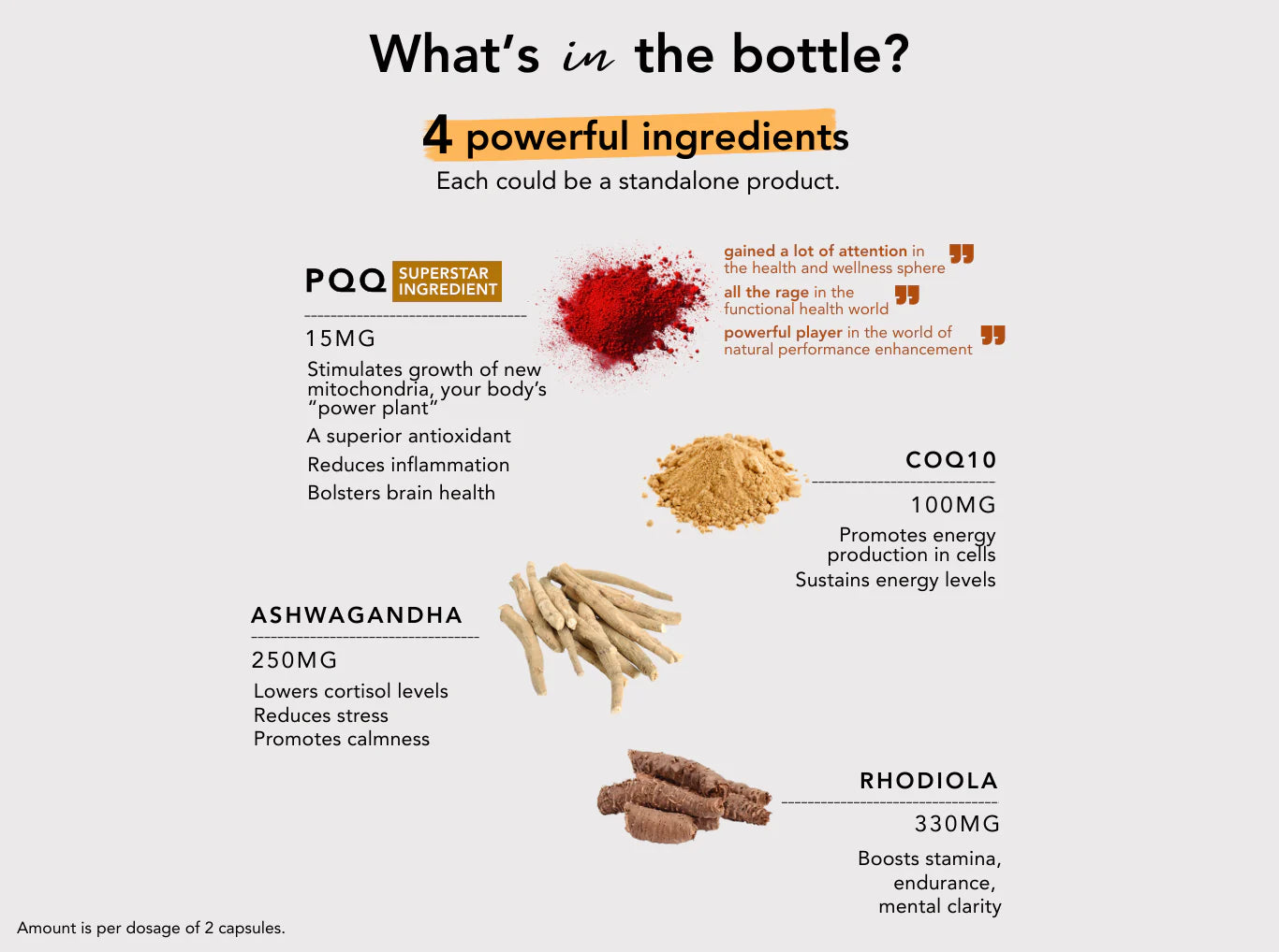 | Pyrroloquinoline Quinone (PQQ) Disodium Salt | 15mg |